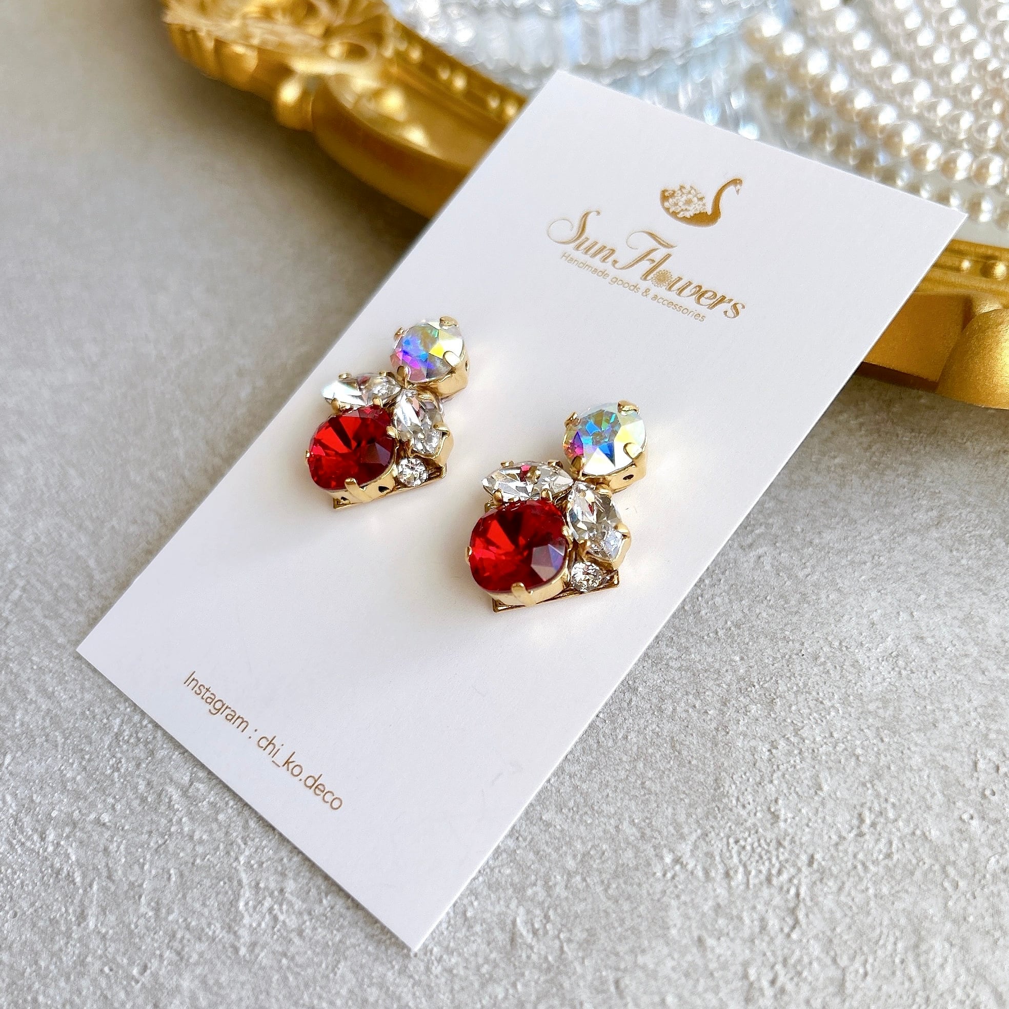【さそり座カラー】オーロラ&レッド☆Angel ピアス/イヤリング