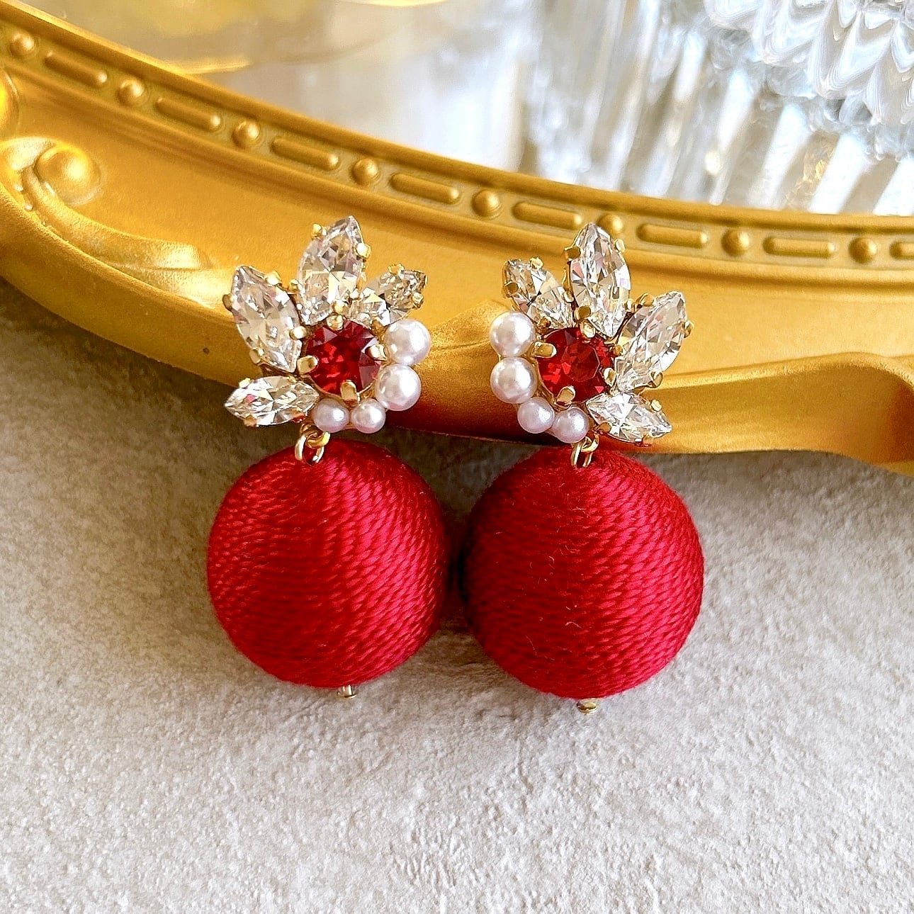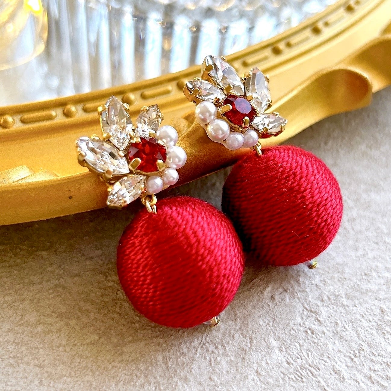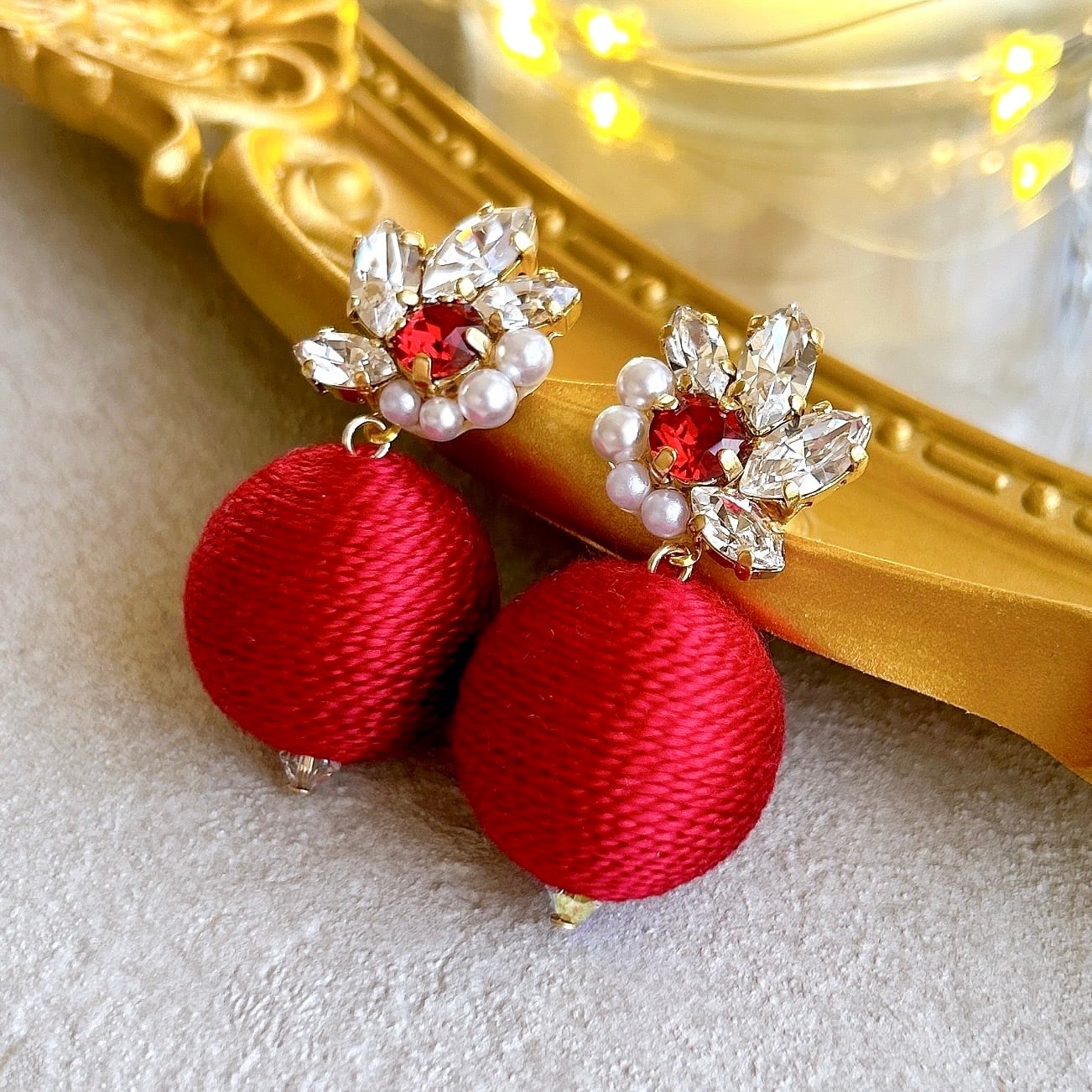 【赤色】煌めきモチーフ&ボンボンピアス/イヤリング(数量限定再販)