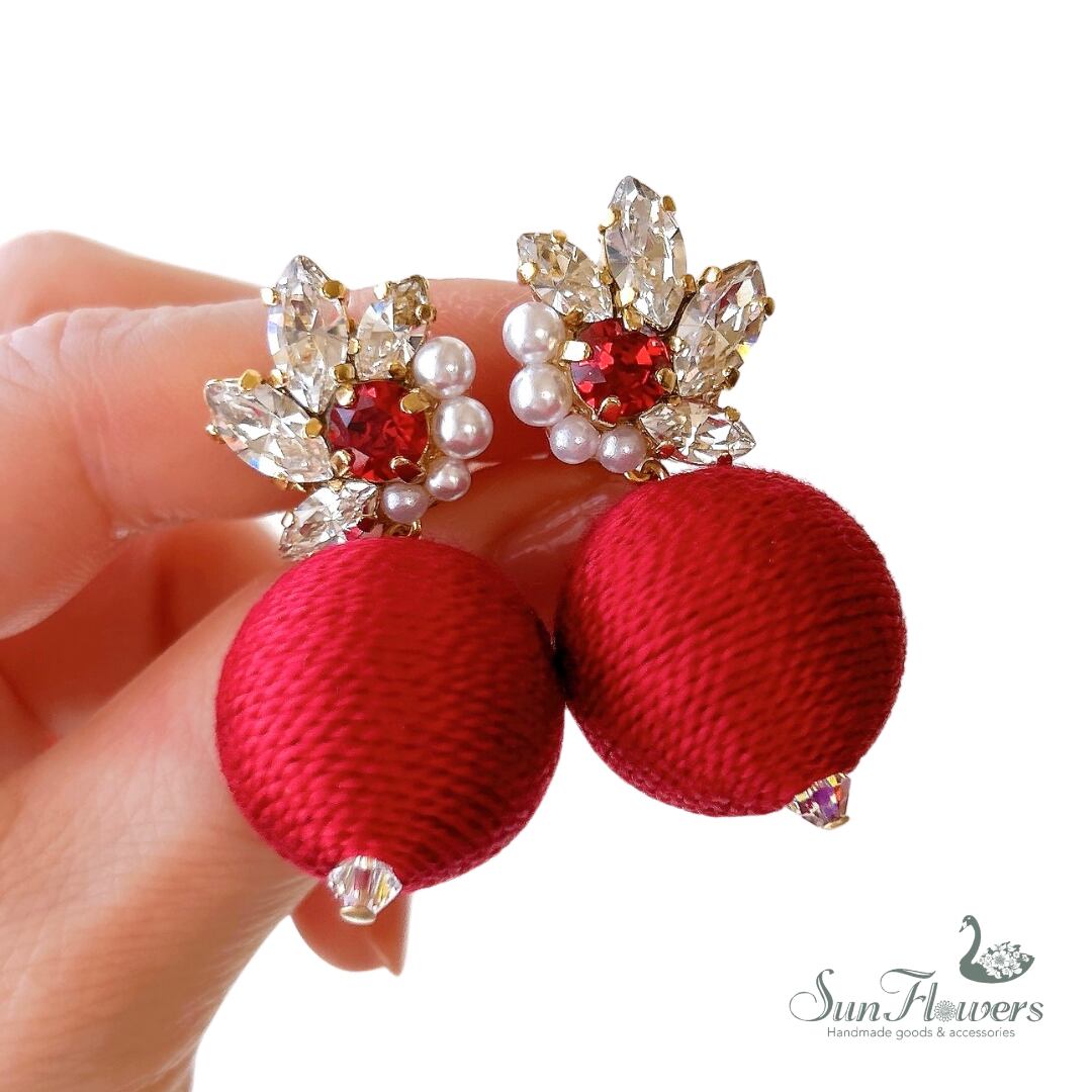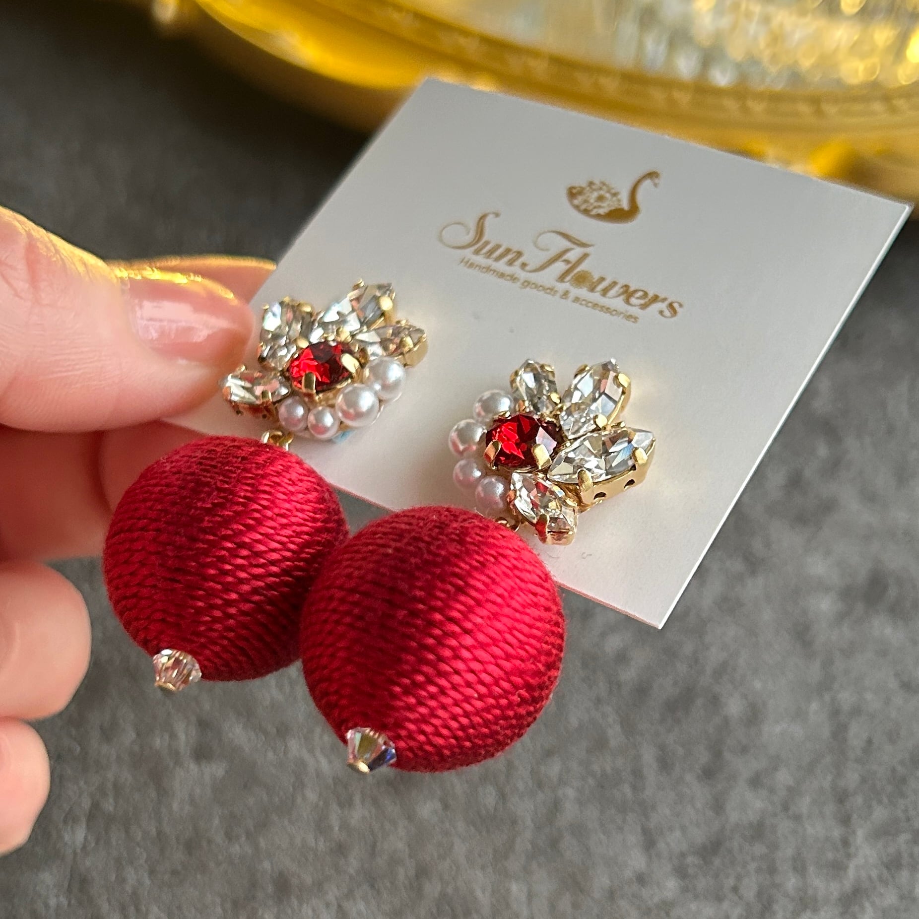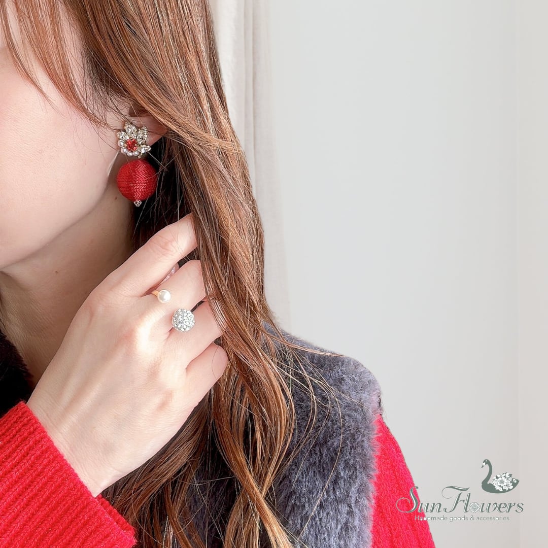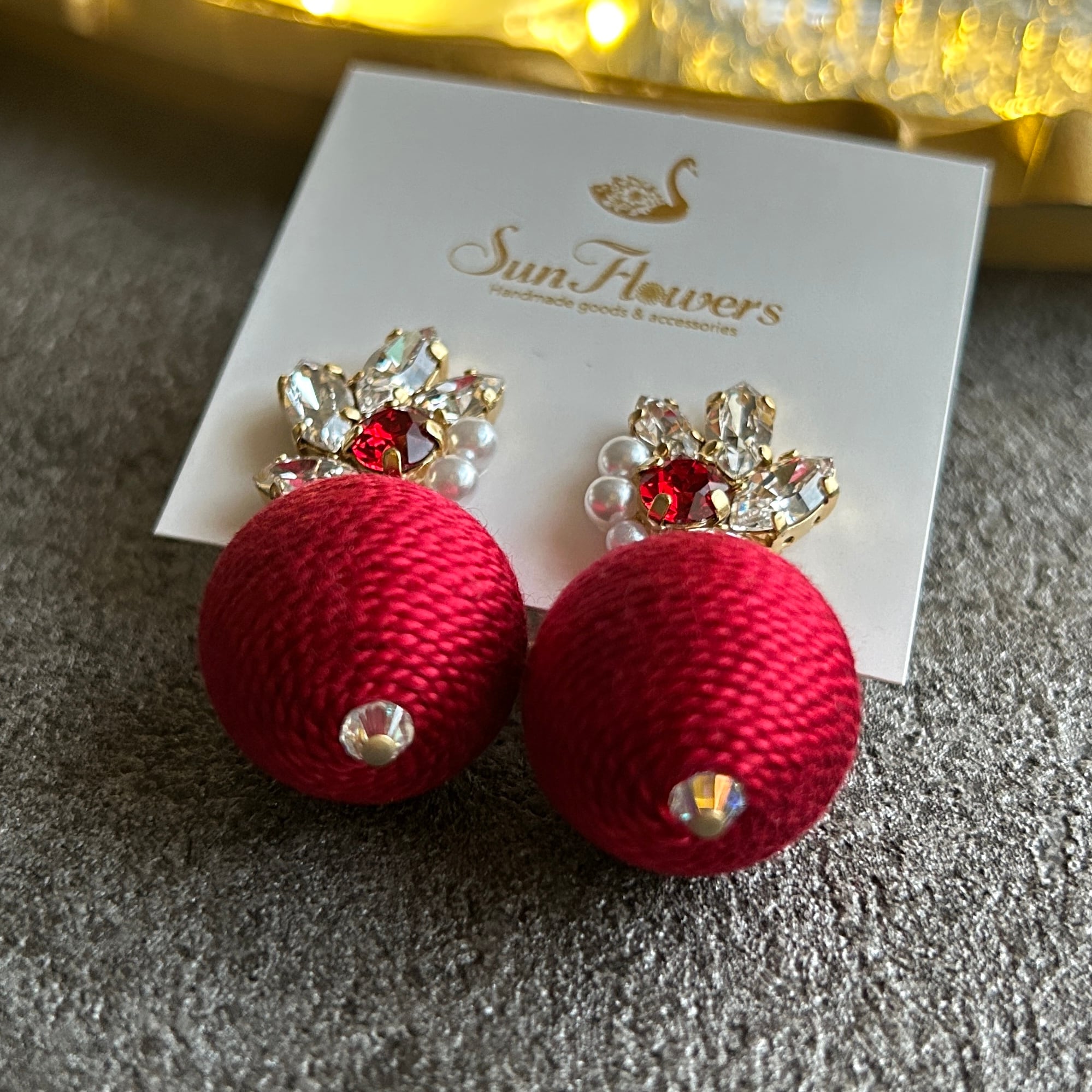 【赤色】煌めきモチーフ&ボンボンピアス/イヤリング(数量限定再販)
